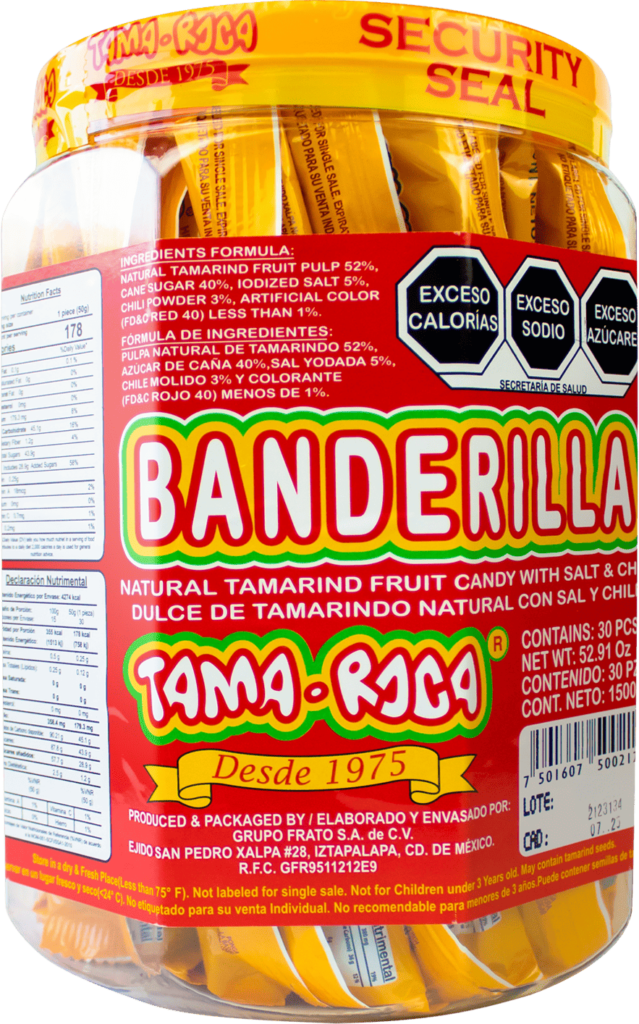 Dulce sabor tamarindo 100% natural hecho banderilla, ideal para acompañar bebidas y alimentos de forma divertida y deliciosa.